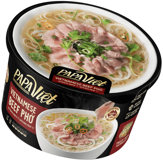 Crafted with essential ingredients, Papa Viet's Ph6 stays true to the authentic flavor. Each package contains premium rice noodles and a rich broth cube with real Australian beef.