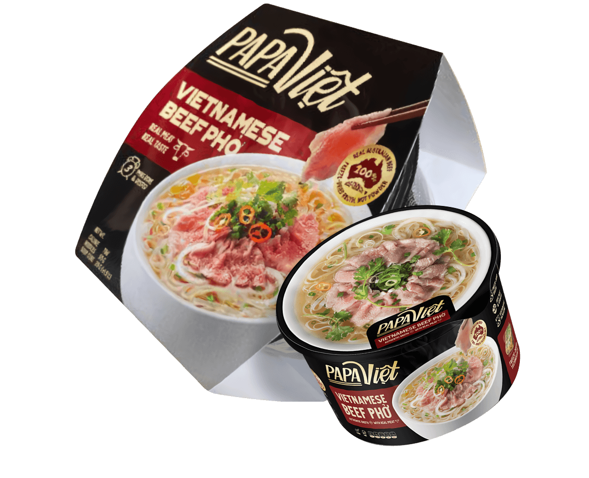 Crafted with essential ingredients, Papa Viet's Ph6 stays true to the authentic flavor. Each package contains premium rice noodles and a rich broth cube with real Australian beef.