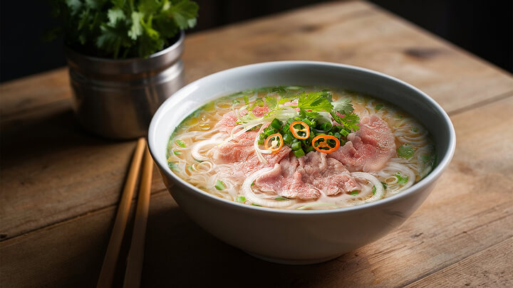 Pha broth is distinctive and challenging to reproduce, but Papa Viet has mastered it. The unmistakable aroma of slow-cooked beef bones with essential PM spices will warm you up instantly.